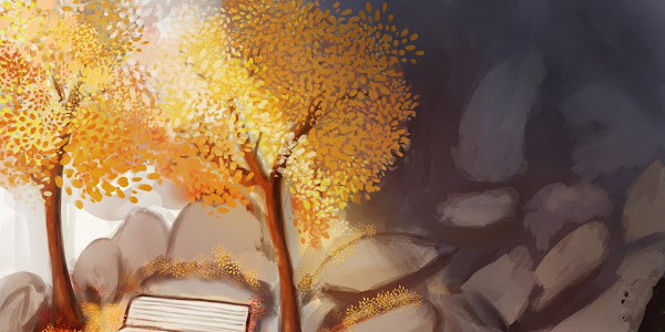 Drawing of a beautiful waterfall and yellow trees Digital Art